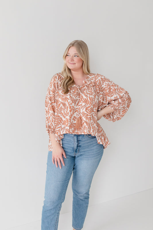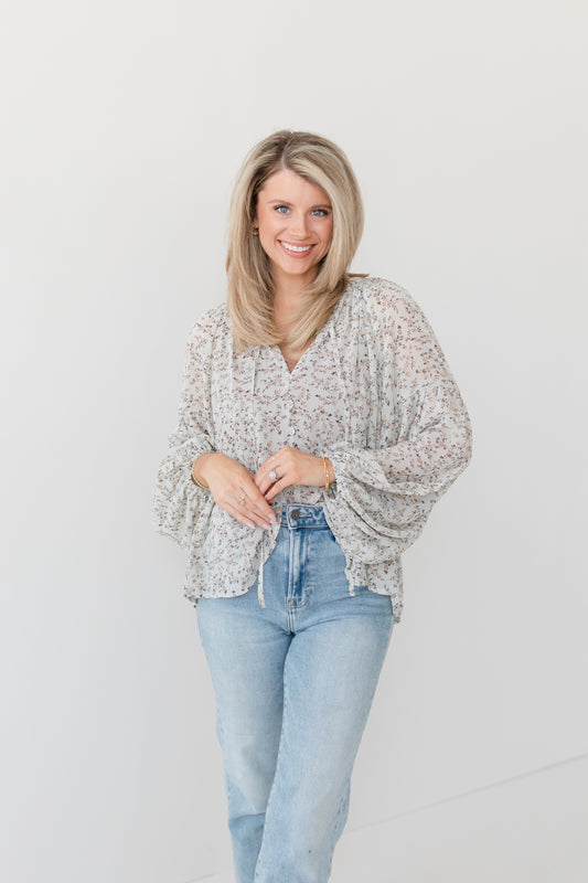 Sage Ditsy Floral Balloon Sleeve Blouse