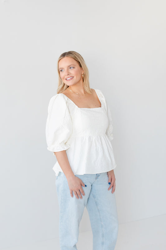 **PREORDER** LAYLA WHITE & GREEN FLORAL TOP (skirt sold separately)